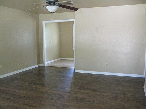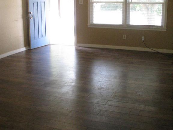 Nice three bedroom, one bath house with wood laminate flooring throughout and cozy dining area. Faux 2" blinds throughout. Carport and large fenced in backyard