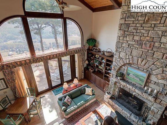 14 Acre estate overlooking the heart of Valle Crucis with stunning views of the Watauga River and layers to Grandfather Mountain. Custom built by the current owners and thoroughly enjoyed for years, the next owners will cherish their opportunity to own on of the rarest offerings in the area. A winding private drive leads to a welcoming level entry with excellent parking. A step through the foyers reveals sweeping views. Designed by David Patrick Moses. Rich details throughout, Banner Custom cabinets, 3 fireplaces, your own British Pub/den and amazing decks. Adjacent to the driveway is a large parcel of treelined rolling meadows, so picturesque it could be the setting for a wedding. A great place for picnics, large gatherings, kit flying or camping. Enjoy fishing on the nearby Watauga River.