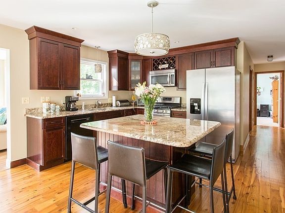 This charming Cape in a rural country setting in Warren, MA offers 4 bedrooms, 2 1/2 baths. The beautiful custom built kitchen has a center island, granite countertops, is fully applianced and has plenty of storage. The home has a four season sun room that overlooks the large inground pool and spectacular views of the lush, mature landscaped property. This opens up to a maintenance free deck to enjoy your morning coffee, take a deep breath and enjoy the beautiful yard. There is a patio near the pool, stone wall in front of the house with a beautiful walkway leading up to the front door. The living room has a wood stove for those cold New England winters. You'll be sorry if you let this one slip by. Home is wired for a generator.