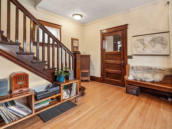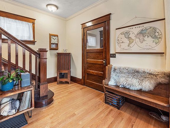 Delightful story and a half 2 bedroom bungalow, located just two blocks from the iconic McKennan Park. As you step inside, you will be transported to a bygone era, with soaring ceilings, beautiful woodwork, and an impressive staircase. This home is adorned with period specific leaded windows, wood floors, and French doors that add timeless appeal. The spacious living room boasts crown molding, large picture window overlooking the front porch and 9ft ceilings. The inviting dining room is perfect for hosting gatherings, while the peaceful sitting room at the back of the house offers a serene escape overlooking the freshly landscaped yard. The kitchen had been tastefully updated with stone countertops, stainless steal appliances and offers a pantry, blending modern convenience with classic charm. As you ascend the staircase, you'll notice the intricate craftsmanship. The upper level echos the elegance of the main, with the wood work and hardwood floors. The front bedroom features west facing windows, where you can bask in the sun or take in a sunset. The master bedroom has flexibility with space for a sitting area, nursery, or office. French doors lead into the primary sleeping area, with two walls of windows and a WIC. The updated bathroom combines the comforts of today with the style of yesteryear. Now to the retreat better know as the backyard. Fully fenced in, with three zones of gather. First an ample deck area where you can enjoy a morning cup of coffee. Or take the pathway to the built in fire pit great for chilly nights or to simply roast some marshmellows. How about spending some time admiring your space under the gazebo while relaxing with friends. There is even a special space to have your own chickens too! There are so many intricate details though out the home that offer warmth, charm and the character that only older homes have. Schedule a showing today and start your dream in this McKennan park area home and live in history.