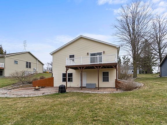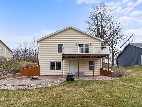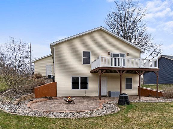 Great location within Angola city limits yet edge of town. Wildlife abounds. Within walking distance of the cultural and sporting events at Trine University, the city library and the bustling downtown. The deck and patio both have amazing sunset views with room for entertaining and grilling out. Sunrises from the front porch as well. The main level has beautiful patterned engineered wood floors. Nicely sized primary bedroom with private bath. Kitchen is designed for convenience with good cabinet space, new induction stove with air fryer, dishwasher new in '21. Full basement contains additional family space, office space and mechanical/storage. Attached garage makes inclement weather manageable. Tankless water heater is new as well as recently upgraded furnace and central air. All appliances stay, as well as washer and dryer. Water softener is included but not currently being used. Location makes travel to interstates easy!