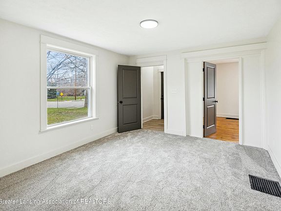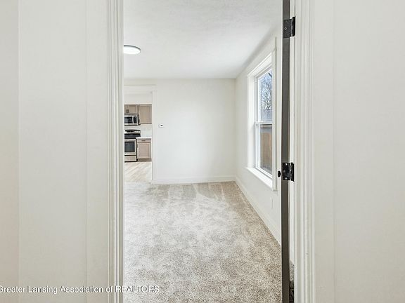 Step onto the inviting wraparound porch and into a spacious foyer that opens to a bright, freshly painted living room with brand new carpet. The first floor includes a full bathroom, a bedroom, and a laundry area—ideal for one-level living or flexible guest space. The show-stopping kitchen features brand-new cabinetry, countertops, and flooring, all accented by soaring ceilings and plenty of room for your dining table. Upstairs, you'll find three more bedrooms, all with fresh flooring and paint, and a second full bathroom. The home sits on a double lot and includes a full basement, offering extra space inside and out. With thoughtful updates throughout and a location that puts the best of Lansing at your doorstep, this one is ready to move right in.