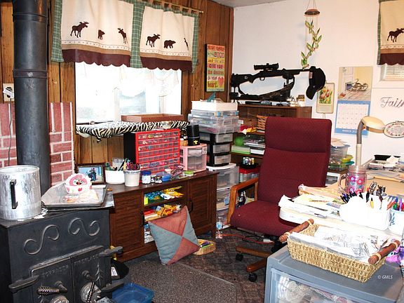 - Interior Features: Flooring- Carpet, Countertops- Laminate, Flooring- Linoleum, Wood Burning Stove