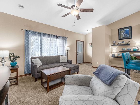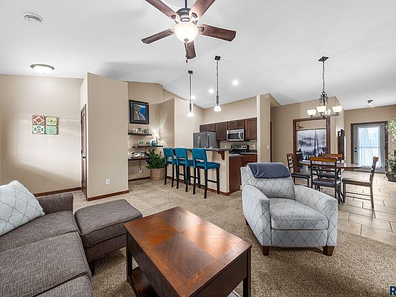 Enjoy no backyard neighbors and take in the pretty scenery from your patio! This townhome gives you easy living with one level to care for & HOA that covers snow, lawn, & garbage! This home also includes 36" doors throughout! The main living space feels large and open with vaulted ceilings. The kitchen includes ceramic tile flooring, a pantry closet for added storage, & soft close cupboards. The two bedrooms are both spacious, and the primary suite includes a large walk-in closet and dedicated bathroom. With a double garage that includes overhead storage shelves, and room for a workbench, you've got options! The front of the home includes a covered porch, as well as the back patio perfect for grilling and hangouts!