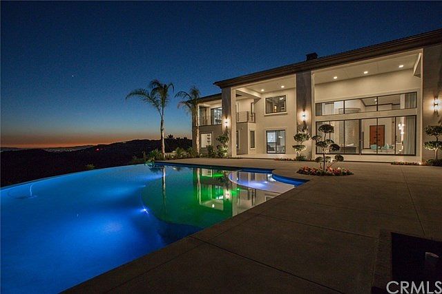 Brand new construction!!! Prepare to be fascinated by the wide array of exquisite finishes, architectural details & stunning amenities that elegantly flow from room to room. This is a world-class contemporary estate that offers an elevated perspective, with unobstructed, panoramic views of Mt. San Jacinto, the San Gabriel Valley as well as into Orange County. The journey begins as you approach this masterpiece. The oversized contemporary entry door sets the stage. The 21-foot high ceilings, Riviera stone columns with massive architectural cherry beams, will impress you. The wine cellar with its tasting lounge creates a transition from the formal areas to the family room. The interior water wall compliments the space & provides a sense of tranquility & harmony. The kitchen is a gourmet's dream! It boasts of custom Blum cherry cabinetry that is offset by the gleaming quarts counters, a center island, & professional grade Thermador stainless steel appliances. This home boasts four en-suite bedrooms plus sumptuous master retreat. Each room has exceptional views & beautifully, thoughtfully designed bathrooms. The back yard is spectacular with a veranda that overlooks the magnificent infinity edge pool & spa as well as the glorious panoramic views. This new transitional estate seamlessly connects the indoor & outdoor space, designed for entertaining family & friends. This home was created for the discerning buyer that values & appreciates innovative design & quality craftsmanship.