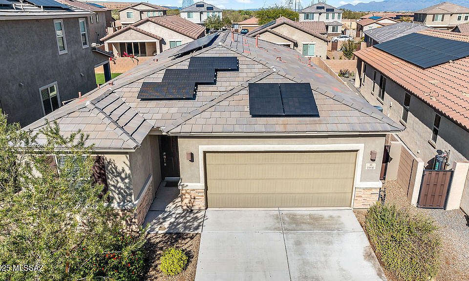 Welcome to a home where sophistication meets sustainability, seamlessly blending high-end design with eco-conscious living. This property has been thoughtfully features a wealth of premium upgrades. The most notable of these upgrades is the inclusion of a fully owned solar panel system.Step inside to discover a bright, open floor plan that immediately captivates with an airy and inviting ambiance. The flow from the living areas to the kitchen creates an expansive environment perfect for both quiet relaxation and vibrant entertaining.The heart of this home is a true chef's kitchen, with top-of-the-line stainless steel appliances, range featuring double ovens and lustrous quartz countertops. Storage is abundant with 42-inch upper cabinets. Adjacent to the main living area, a flexible den provides endless possibilities. This private and adaptable space is perfect for establishing a quiet, dedicated home office, a cozy media room for movie nights, or could even serve as a convenient, potential third bedroom.
