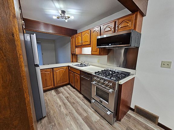 The stainless steel appliances in the kitchen add a modern touch, while the updated vinyl plank flooring throughout creates a sleek and stylish look.