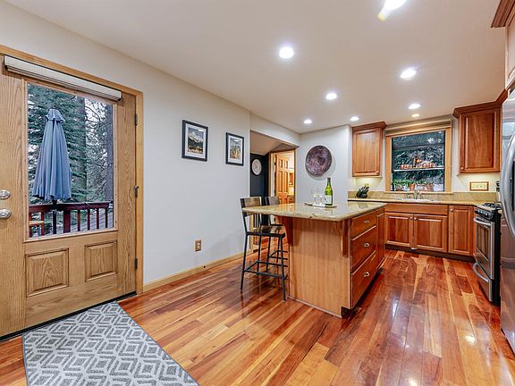 Don’t miss this beautifully remodeled home at Donner Lake, offering flexible living with two separate units on a gorgeous pine-studded lot. The upstairs unit features 2 bedrooms and 1.5 baths, while the lower unit includes 2 bedrooms and 1 full bath—perfect for multi-generational living, rental income, or guest accommodations. Both units share a spacious mudroom and laundry area, and a detached oversized 2-car garage provides ample storage for your mountain gear. Thoughtful upgrades include Low-E vinyl windows, updated appliances, granite counters, cherry wood floors, and stylish tile finishes. Enjoy mountain charm and modern comfort just minutes from the lake, trails, and downtown Truckee!