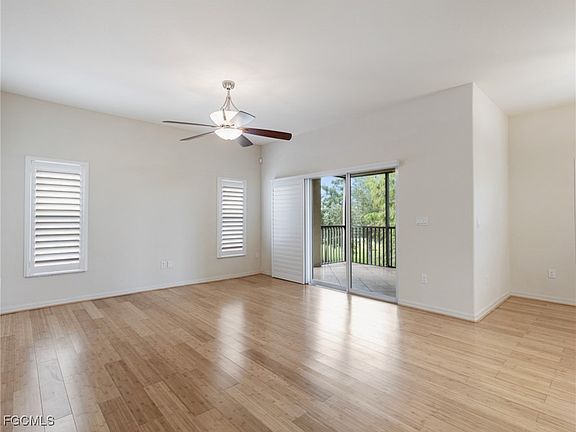 This bright 3-bedroom, 2-bath condo near the white sandy beaches of Southwest Florida features designer touches, volume ceilings, crown molding, plantation shutters, and neutral paint with tile and carpet flooring. It offers spacious living with preserve views from a private lanai. Recent updates including a 2022 AC and electrical panel, plus the Hot Water Heater is 2018. This quiet community also offers a 1/2 mile walking trail, pool, and fitness center, and is just minutes from world class dining, entertainment, and the SWFL International Airport. You are now HOME!