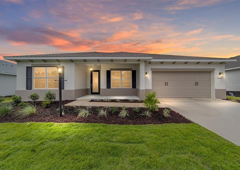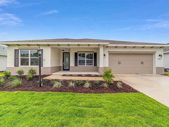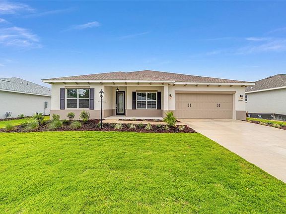 Stunning Ariana Model in Longleaf Ridge at On Top of the World! This beautifully designed 2-bedroom, 2-bath home with a 2-car garage and a flexible bonus room combines style, comfort, and functionality. Step inside to an inviting open floorplan filled with natural light and tile flooring throughout, creating a cohesive and elegant look. The gourmet kitchen features quartz countertops, premium cabinetry, stainless steel appliances, a spacious island, and a walk-in pantry—perfect for both everyday living and entertaining guests. The split-bedroom layout ensures privacy, while the primary suite serves as a relaxing retreat with a tray ceiling, large walk-in closet, and a spa-inspired bath showcasing dual vanities and a sleek walk-in tiled shower. Enjoy seamless indoor-outdoor living with sliding doors leading to a screened lanai—ideal for morning coffee or evening gatherings. Nestled in the sought-after Longleaf Ridge neighborhood, this home is part of On Top of the World, Ocala’s premier 55+ community offering world-class amenities including golf, fitness centers, swimming pools, pickleball, clubs, and countless social activities. Experience luxurious living in a community designed for your lifestyle!