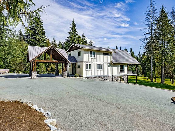 CAR ENTHUSIASTS or HOBBIESTS. Impressive 5 bedroom 3 bathroom newer home with a DETACHED 4 BAY GARAGE, on a mostly CLEARED AND MANICURED 4.05 ACRES, including a self contained SEPARATE COACH-HOUSE (2 bedroom) for guests or extended family. Main house high-end upgrades and finishes were done afterwards by a German Master-Craftsman. Stunning gourmet kitchen with stainless steel appliances, including a double wide refrigerator, (walk-in pantry), adjacent to the great-room with soaring vaulted ceilings,( floor-to-ceiling stone gas fireplace) and chalet style windows lead out to huge covered patio (29' x 14') looking out onto the GOLF GREEN. Amazing Primary Bedroom (29'x21') has massive walk in closet with built -in cabinetry and a luxurious en-suite with designer tub and separate glass shower