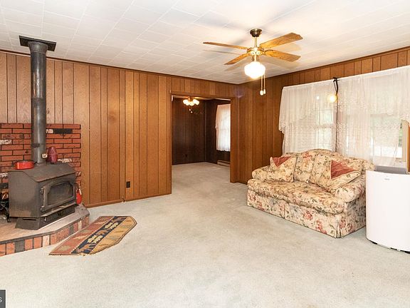 Brick rancher situated on nearly a half acre partially wooded lot for privacy with paved driveway and attached garage. The property has ramp access to the front porch and two storage sheds in the backyard. Inside you have ample living space, formal dining room, spacious kitchen with tile floors, nice sized bedrooms and a wood stove. Property being sold AS-IS, where-is with no guarantees or warranties. Call for more information.
