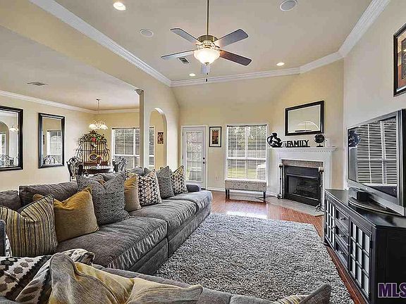 Beautiful well maintained 3 bedroom 2 bath Acadian Style home with excellent curb appeal and low maintenance landscaping. The back yard is completely wood fenced and has an elongated open patio stretching across the back of the home, for entertaining family and friends. There is also a 12x10 storage shed. The kitchen features an abundance of cabinets with above lighting, a breakfast bar, black modern appliances, a walk-in pantry, crown molding, ceramic tile flooring and is open to the dining area and living room. The spacious living room features wood flooring, recessed lighting, surround sound speakers and a corner gas log ventless fire place, with tile surround and a decorative mantle. All the bedrooms are carpeted and nice size. The spacious master bedroom has a sitting /computer area and opens into the master bath suite. The master bath suite features granite double vanities, a garden soak'er tub, a separate shower and his and her separate walk-in closets. Great Location! Great Neighborhood! Great Schools! Great Price! Make an appointment now for your own private showing.