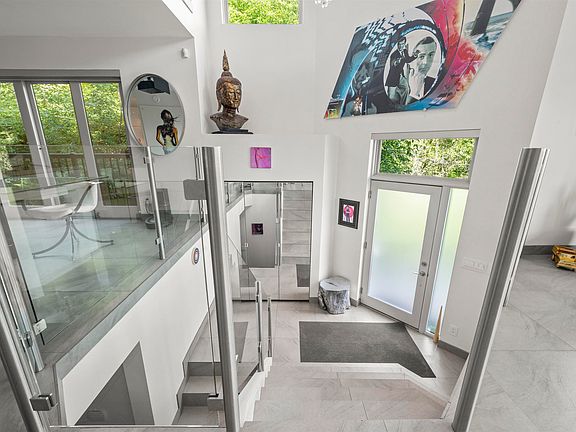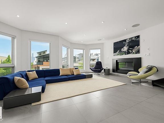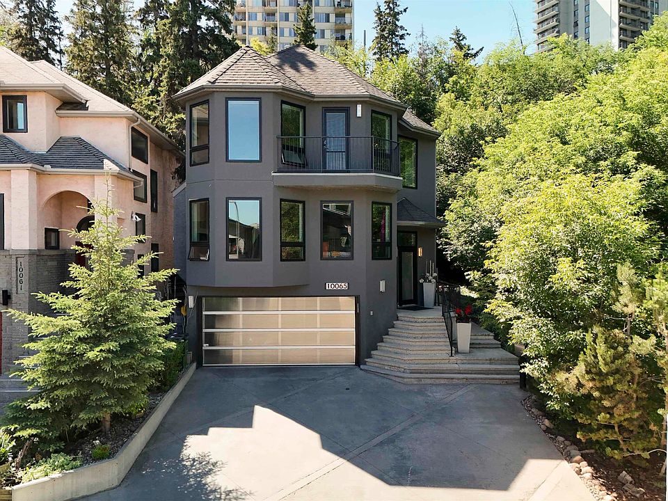 Perched in Edmonton’s river valley in the exclusive enclave of Skunk Hollow, this architectural gem offers the feel of a penthouse—without the condo fees or shared walls. Rebuilt from the framing out in 2007, the modern 2-storey design is wrapped in glass, blending urban sophistication with the calm of nature. Wake to treetop views and unwind to city lights—it’s like forest bathing, elevated. The open-concept main floor features two stylish living areas and a chef’s kitchen with Sub-Zero and Miele appliances, perfect for hosting. Upstairs, the owner’s retreat includes a private office, flex space, spa-like ensuite, and a bedroom that opens to a patio nestled in the ravine—ideal for slow mornings or bold conversations. The reverse walkout basement offers a heated garage with epoxy floors, full bath, and guest/flex room (no window). In-floor heating throughout. Quiet, rare, and unforgettable—this home is made to impress and built to retreat.