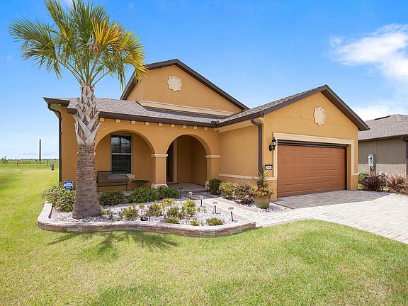 Beautiful, turn key Martin Ray Extended model w/ Gorgeous open gourmet kitchen w/ top of the line KitchenAid appliances, custom cabinets w/ roll out trays, granite & bar seating open to dining area & lg great rm. Enc bonus rm w/ windows overlooking beautiful open pave stone patio w/ pergola in addition to 8 x 17 screened lanai w/ pave stone flooring. Backyd metal fence has pet screening. Pie shaped lot backs up to lovely meadow & offers much privacy. Lg Master suite w/ extra lg tiled shower. Guest rm/bath split from master. Office has 10 panel glass doors. More pave stone in extra wide driveway & entry plus mature, upscale landscaping adds nice curb appeal. Garage boasts 4'extension for golf cart/workshop & has motorized Hide Away screens. Upgraded energy pkg w/ foam filled walls.