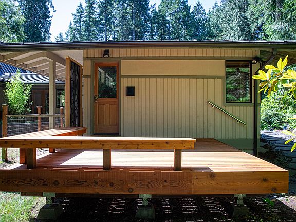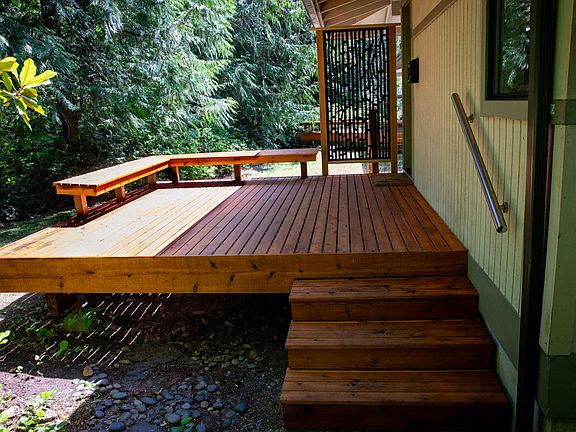 Full-size kitchenSeparate entranceWalk-in showerBamboo blindsLarge private deckSerene acres