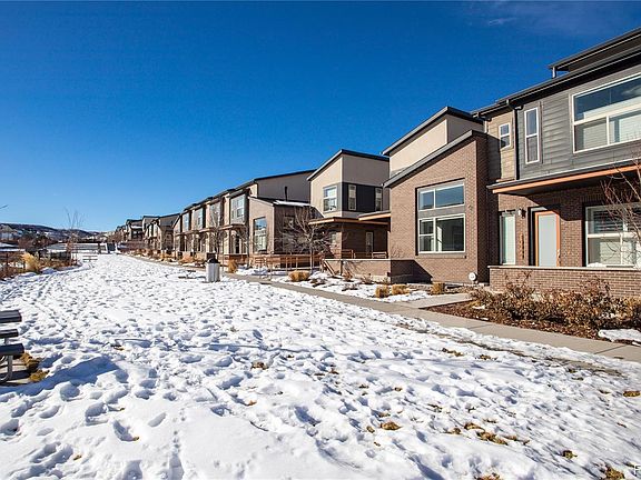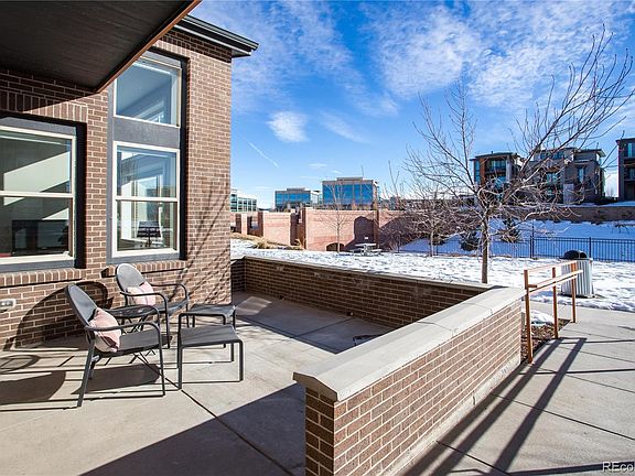 Enjoy the highest standard of finishes with every upgrade imaginable in this fabulous light-filled home, showcasing high ceilings, hardwood floors, motorized Hunter Douglas blinds and Quartz countertops throughout. The well-appointed chef’s kitchen features a large center island including storage; crisp, white cabinetry with under-cabinet lighting; Cambria Torquay Quartz countertops, attractive tile backsplash to the ceiling, plus Miele dishwasher, Wolf Induction range and SubZero refrigerator. The kitchen adjoins a comfortable dining and living room with walls of windows allowing incredible sunlight to stream into the interior. Relax on the spacious patio just outside the living room, with a gas line for barbecuing. Retreat to the private main floor primary suite, boasting a spa-like 4-piece bath with AZT Savannah Milk tile, and large walk-in closet. Upstairs you find a loft/family room with office area, as well as a guest bedroom with walk-in closet, plus full hall bath with extra-deep soaking tub. A huge basement offers great potential for additional living space. Thoughtfully designed, the home is completed by a convenient main level laundry room with Asko washer and dryer, powder room, and 2-car attached garage – finished with drywall/paint, epoxy coating on the floor and plumbed with gas for a possible garage heater. The unit is partially ADA certified, and includes solar, covering a portion of electrical costs. Conveniently located in the popular Ridgegate community, near Park Meadows, the Light Rail, and some of the most trendy restaurants and shops in Lone Tree. This fully customized turn-key home perfectly blends a stylish interior with the comforts of Colorado living.