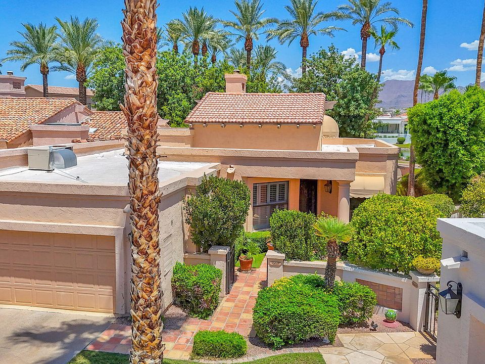 Welcome to Las Brisas, the prestigious, guard-gated lake community in Scottsdale Ranch. This welcoming, spacious single-level townhome blends classic architecture with contemporary features, situated in a quiet interior cul-de-sac. Gated Saltillo tile courtyard entrance & custom iron front door invite you into the expansive, sunlit great room with dramatic high ceilings, stone fireplace and custom built-in cabinetry. The adjacent dining space with mirrored wall is currently used as an office, demonstrating this floor plan's flexibility. The charming kitchen with sunny garden window opens to the patio that embraces the entire house, with multiple sliding doors to celebrate indoor-outdoor living. Mountain views & lush mature landscaping make the low-maintenance outdoor space truly tranquil. The primary suite with its elegant bath & sizable walk-in closet is a relaxing owners' retreat. The generous guest bedroom and full hall bath round out this popular floor plan. Large laundry room with utility sink and air-conditioned 2-car garage both offer abundant storage. Meticulously maintained, this turn key home also features a whole house water filtration system and sophisticated security system. Las Brisas is set on lagoons and Lake Serena frontage, creating an enchanting setting. Scottsdale Ranch amenities for residents are unmatched, with three refreshing pool areas and two tennis courts, all secure with 24-hour guard-gated access. Minutes from the freeways, Scottsdale's best shopping, dining, parks, and endless biking/walking paths, this home truly offers the perfect blend of convenience and luxury. Welcome Home!