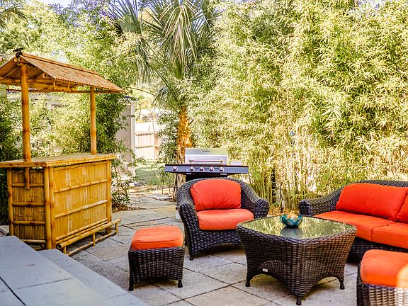 Outside: backyard - cozy and quiet tropical oasis with natural shade from surrounding bamboo trees.