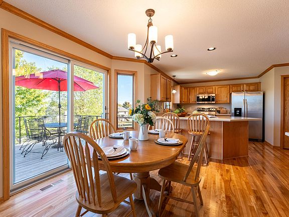 Better Than New – Spacious Two-Story with Walkout Basement. This home is a rare find in Kasson - offering the space, layout, and lot you don’t find in the newer developments. With 2,628 finished square feet, a walkout basement, and one of the best lots in town, it’s built for real life and feels even larger than it measures. You’ll notice the difference the moment you walk in. The two-story foyer makes a great first impression. The main level includes a flexible living room with gas fireplace, updated kitchen with solid surface countertops and refinished hardwood floors, main-floor laundry with pantry closet, and a convenient ½ bath. Upstairs has a spacious primary suite with private ¾ bath and walk-in closet plus two bedrooms and a full bath, The walkout lower level offers a large family room with exercise area, full bath with jetted tub, and a 4th bedroom. Recent updates like new furnace 2025 and AC 2022, along with features that often cost extra in new construction - like gutters, a deck, patio, fenced yard and a fully landscaped lot, make this home a smart choice. Only available due to relocation!
