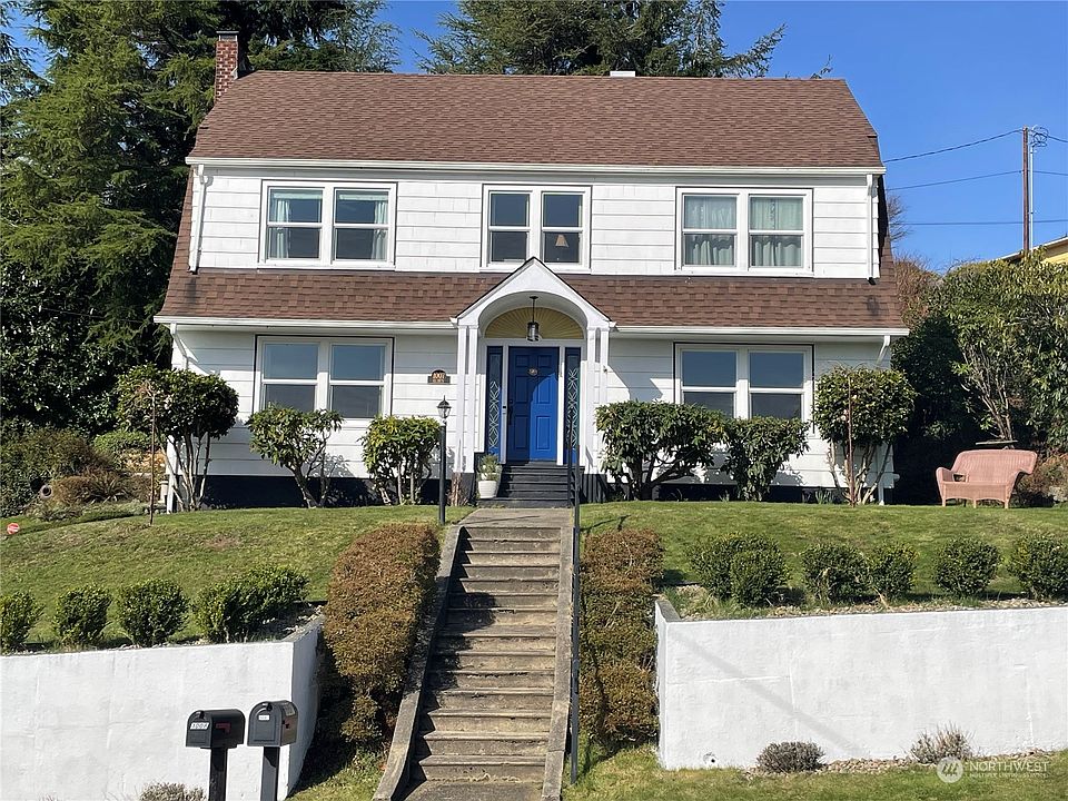 Spacious view home off Broadway Hill - on a clear day you can see Mt Rainier from this classic colonial home. Parking for your motorhome/boat/toys. Updates include plumbing and wiring and vinyl windows. New roof in 2015. Property recently surveyed. County records show square footage to be 2004 SF of the main living area, in addition, seller estimates the family room/den in the daylight basement adds an additional 332 SF. You will love this move in ready home!