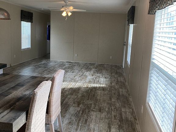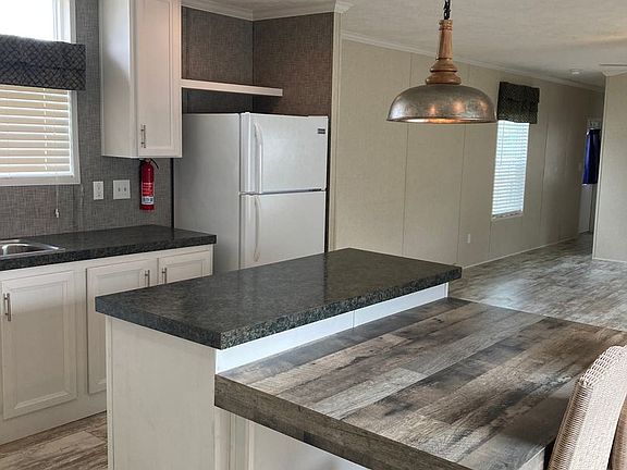 This 3 bed, 2 bath- 2017 Clayton 16x76 mobile home The home is loaded with upgrades: Extra insulation for low power bills. (The average power bill on this home for the last year has been $185. month). Steele front door with peephole Full glass storm door Tall 8' ceilings with can lights Island kitchen Stove, fridge, dishwasher Glass block behind the stove Ceiling fans Fully lined cabinets Extra cabinets Huge, comfortable oval soaking tub in master with large separate shower with seating Porcelain sinks in baths Dual vanities in the master bath Transom windows for extra lighting Large covered 8x12 deck with extra storage underneath 2" blinds throughout
