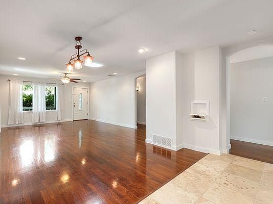 This 3 bedroom/ 1.5 bathroom, 1536 sq. ft. mid-century home sits on a quiet, tree-lined street with no thru traffic. Enjoy gorgeous original oak hardwood floors, open living and dining floor plan and recently remodeled master bathroom. The kitchen has stainless appliances, marble tile flooring and professional grade vent hood. Incredibly spacious backyard deck with shade sail and fenced backyard is perfect for entertaining all year round. Separate laundry room with washer and dryer. All rooms have double-pane energy efficient windows. Nest thermostat. One car garage with built-in storage racks. Google Fiber available. Walkable neighborhood close to some of the best restaurants, shops and entertainment in Austin. 10 minutes to UT/downtown. 5 blocks from bus stop.