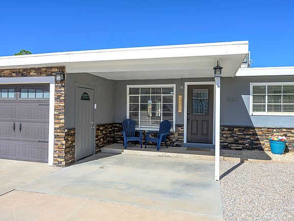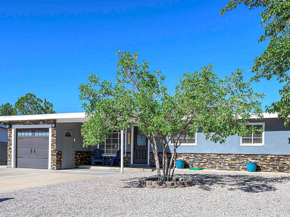 This beautifully updated 3-bedroom, 1-bath home is move-in ready and full of charm, inside and out. Enjoy low-maintenance living with professional zero-scaping in both the front and back yards. Relax on the spacious east-facing covered front porch while taking in breathtaking sunrise views of the mountains. Step inside to an open, flowing floor plan that’s perfect for both everyday living and entertaining. The luxurious kitchen features stainless steel appliances, abundant cabinetry, and plenty of storage space. Washer and dryer included. Out back, the oversized yard is ideal for family fun, complete with a large, covered patio and an outdoor cooking and dining area—perfect for grilling and watching the sunset. A one-car garage adds convenience and additional storage. Located in one of Alamogordo’s most sought-after neighborhoods, this home puts you close to shopping, dining, schools, and all the amenities the city has to offer. With its great location, pristine condition, and perfect price, this gem won’t last long. Call today to schedule your private showing!