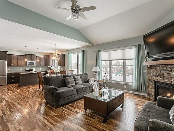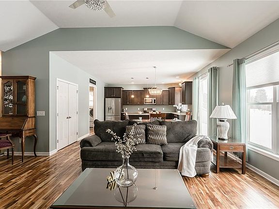 This STUNNING MODERN ranch home offers exceptional amenities featuring: Rich Brazilian Cherry Wood Flooring, Crystal Chandeliers, Contemporary Vessel Bowl Sinks, Granite countertops & Plank tiles in all baths plus Central A/C. The IMPECCABLE chef's kitchen has clean lines and crisp dark cabinetry with high end STAINLESS STEEL APPLIANCES , GLASS TILE BACKSPLASH, GRANITE island & countertops. LAVISH Master En-Suite features 2 Shower heads & WALK IN CLOSET. Cozy stone fireplace keeps your family warm in this OPEN CONCEPT. Basement finished with One-of-a-Kind BARNWOOD WALL & Hardwood flooring. Freshly painted in today's elegant colors. Attached two-car garage, big back yard with stamped concrete walkway & back patio. This CUSTOM built 4 yr NEW LUXURIOUS home is PERFECTION! CALL to view TODAY!