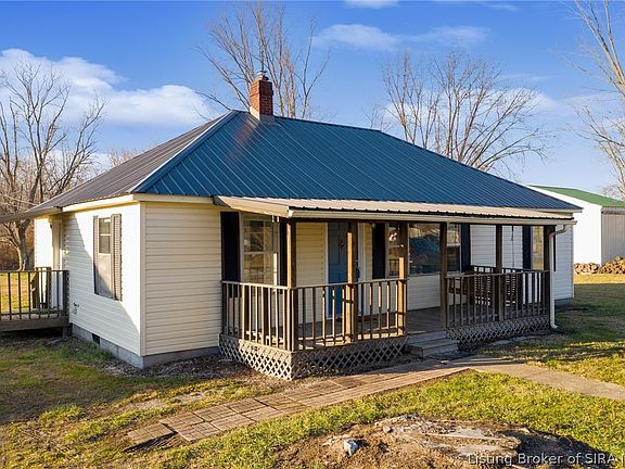 If sitting on a covered porch of an adorable country cottage sounds inviting to you, then you don't want to miss this home! It features 3 bedrooms and 2 bathrooms on almost a half acre lot and is only 5 minutes from Charlestown. The metal roof is apx. 4 years old. Updates in the last 3 years include: 4 ceiling fans, water heater, range/oven, kitchen vent, kitchen subfloor and LVP flooring, kitchen lower cabinets and countertops, LVP flooring in dining room and bathroom, electrical panel, and most outlets replaced. The shed in the backyard is new as well! The LP tank is leased and is 3 years old. This home is being sold "as is". Seller welcomes inspections but will make no repairs.