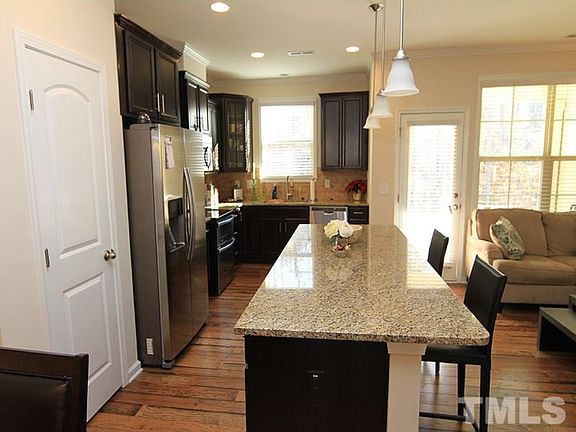 Beautiful newly built townhome in great Cary location! Backs to the Black Creek Greenway and close to Downtown Cary, dining, shopping and more! Open concept on first floor ~ great for entertaining! 3 spacious bedrooms all with large bathrooms and walk in closets. Upgraded kitchen boasts huge island with seating, granite countertops, tile backsplash & SS appliances. Stunning hardwood floors on main floor, crown molding, covered patio with lighting, security system, garage with opener and so much more!