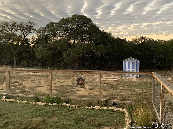 This home qualifies for a 100% loan-to-value mortgage (NO DOWN PAYMENT)! This home is basically new! Built in 2022, this 3 bed, 2 bath, 1250 square foot home is a real charmer! It has the over 90% of the builder's 10 year structural warranty remaining as well as 1 year remaining on the mechanical systems warranty. In addition, the home has improvements not to be found on a new home, namely a landscaped, fenced-in back yard and a storage shed out back; it's the best of both worlds! This neighborhood has 4(!) parks available to residents that offer a playground, access to Rebecca Creek and the Guadalupe River for swimming and fishing, picnicking, and riding trails. This open floor plan makes the best use of the home's 1250 square feet which feels at the same time, spacious and cozy. Other features are granite counters in the kitchen and bathrooms, vaulted living room ceiling, raised tray ceilings in the dining room and master bedroom, island kitchen with stone accents to match the exterior. Come enjoy the seclusion of this tucked away gem in the Texas Hill Country!