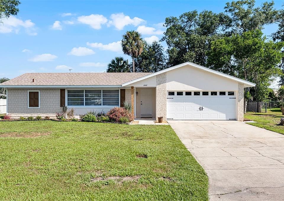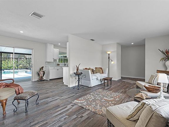 Fully renovated and truly turn-key, this 4-bedroom, 2-bath DeLand home is ready for its new owner! Step inside to discover a spacious living area highlighted by a large picture window that fills the space with natural light. The open layout flows seamlessly into the kitchen, featuring sleek stone countertops, stainless steel appliances, and a dining area ideal for family meals or entertaining guests. The split-bedroom floorplan provides privacy in the primary suite, complete with an updated vanity and a modern stand-alone shower. On the opposite side of the home, you’ll find three additional bedrooms and a full bathroom with a tub/shower combo—perfect for family or guests. Sliding glass doors lead you to your own private outdoor oasis. Enjoy the sparkling screened-in pool and spa, a covered patio for lounging or dining, and a large fenced yard offering plenty of space to relax, play, or entertain. Located in the desirable Live Oak Park community with no HOA, sitting on over a quarter acre, this home is just minutes from historic downtown DeLand, local shopping, restaurants, and has convenient access to I-4—making it easy to reach the Orlando attractions to the west or the beaches to the east. Don’t miss the opportunity to make this updated pool home yours!