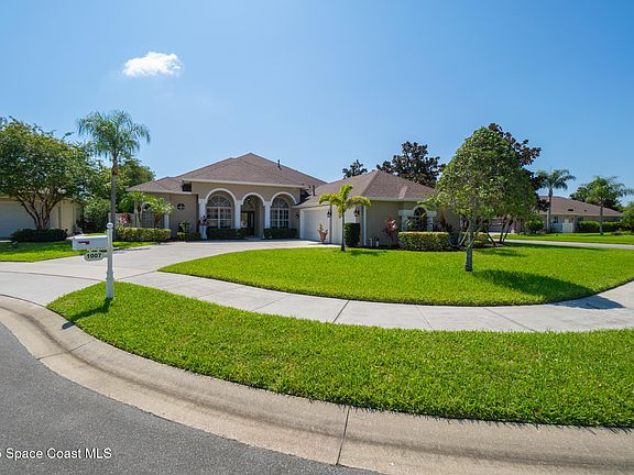Gorgeous remodeled custom home on a corner lot with a 3-car garage, featuring 4 bedrooms plus an office/den (optional 5th bedroom), 3 full baths, 1 half bath, and a flex room off the laundry area. This light-filled open floor plan boasts high ceilings, crown molding, designer lighting, plantation shutters, and recent upgrades including two premium HVAC units (one under 1.5 years old, the other under 6), a 5-year-old roof, and a Rheem gas water heater less than 4 years old. The updated kitchen showcases exotic granite, 42'' custom cabinets, recessed lighting, a gas range, and stainless steel appliances, while the spacious primary suite offers a sitting area, tray ceiling, wood flooring, dual walk-in closets, and a luxurious bath with travertine tile, oversized garden tub, dual vanities, and separate shower. With a fenced backyard with plenty of room for a pool, screened lanai, and zoning for Viera's new middle school, this home combines comfort, elegance, style, and a prime location.