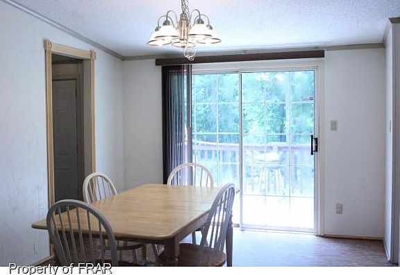 -This beautiful home is just minutes from Fort Bragg and very well maintained. It features a living room and den, great entertaining guests! French doors to large master bed, and French doors lead to the master bath, which features dual vanity, garden tub, separate shower, and walk-in closet. This perfect starter home has a beautiful yard with plenty of shade perfect for barbecuing on the wooden deck! New metal roof, Stainless steel appliances, Large storage shed to be included in sale