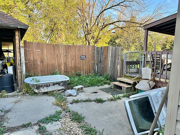 This 4-bedroom home is a fantastic opportunity for the buyer ready to build some sweat equity. The main floor features a desirable setup with one bedroom, a full bathroom, and a laundry area, offering excellent accessibility and convenience. The dining area has glass doors that open right onto the back deck, perfect for grilling and outdoor entertaining. The backyard is already fully fenced-in, making it a great space for pets or gardening! The house exterior is low-maintenance with vinyl siding, and the detached garage features wood siding. Due to the condition, this property will not qualify for VA, FHA, or USDA financing. Cash or conventional loan buyers are encouraged to inquire.