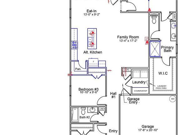 Brick skirtTiled walk-in showerLarge center islandQuartz countertopsSpacious walk-in pantryBright open spacesStainless steel appliances