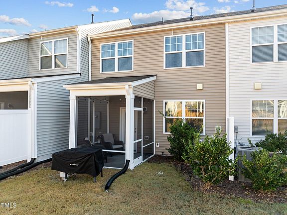 This lightly lived-in townhome features numerous upgrades throughout and is located in the Copley Farm subdivision which has a community pool, playground and dog park! Step inside to discover an open-concept eat-in kitchen boasting a center island bar, luxurious quartz countertops, elegant white shaker cabinets, and stainless steel appliances, including a gas range. The kitchen seamlessly flows into the breakfast area and family room, creating the perfect space for entertaining and family gatherings. The upgraded lighting enhances the home's inviting atmosphere, while the screened porch out back provides a serene spot to unwind. The spacious primary suite is a true retreat, featuring trey ceilings and a generous walk-in closet. The primary bath is beautifully designed with a tiled walk-in shower, double vanity with white shaker cabinets, and stylish tiled floors. With two additional spacious guest bedrooms and an abundance of natural light throughout, this home truly feels open and airy. Enjoy the ease of wall-to-wall LVP flooring on the main level, adding both style and practicality. A single-car garage offers convenience and additional storage. Located with an easy commute to Raleigh, Durham, RTP, and RDU Airport, this townhome is perfectly situated for modern living. Don't miss your chance to see one of the nicest townhomes on the market today— come see it for yourself!