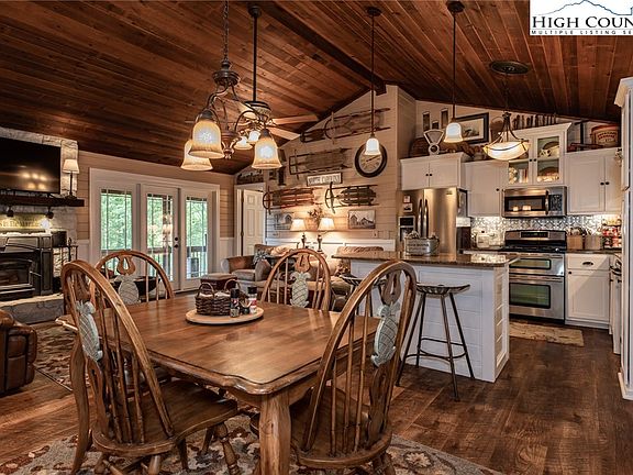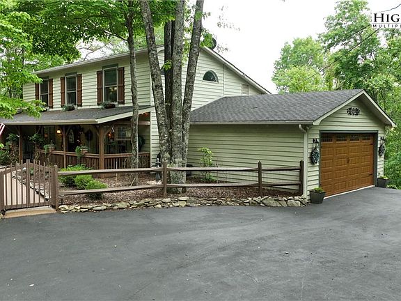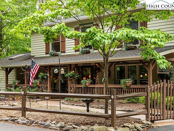 High Country Stunner with 2 CAR GARAGE and fenced in yard! New Roof on second floor 2022, New roof over lower section and garage in 2012. LVP installed LR/DR 2019, New furnace 2014, Mitsubishi mini splits added in 2014. So many new and amazing improvements to this beautiful mountain home! One level living with 2 bedrooms and 2 full baths on the main level, wood burning fireplace and formal dining and living room, sunroom, breakfast seating and den, side porch with outside dining, and back covered screened in porch. Upstairs is an open concept master suite with massive ensuite bathroom complete with multiple walk in closets and a room converted to a tiny office. This house doesn't disappoint! Currently a 2 bedroom septic but has been approved to expand to a 3 (see attachments and agent remarks) Full time owner so please schedule with showing time. All appliances remain. Short term rentals permitted. Gated resort community of Powder Horn. 1785 poa dues per year. Full time maintenance, fitness center, community pool, hiking trails, trout waters, clubhouse, tennis court,campground,rivers and streams abound. 13 miles to downtown Boone.Outside fire pits and fountain remain. Central HVAC