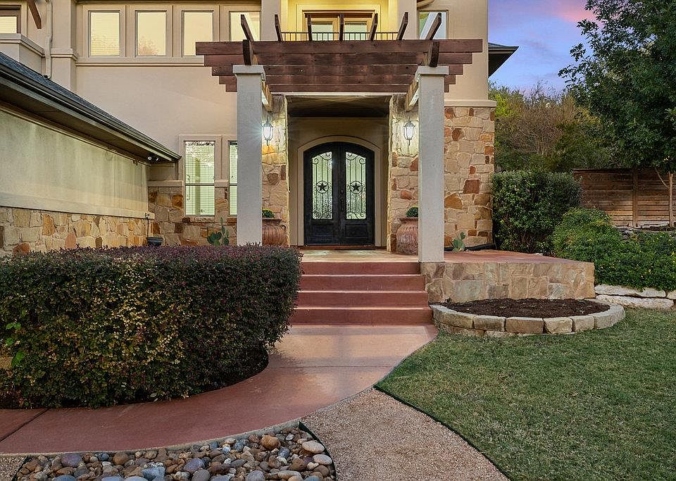 Heated poolStone fireplacePrivate balconySport courtHot tubIndoor-outdoor livingLake austin park access