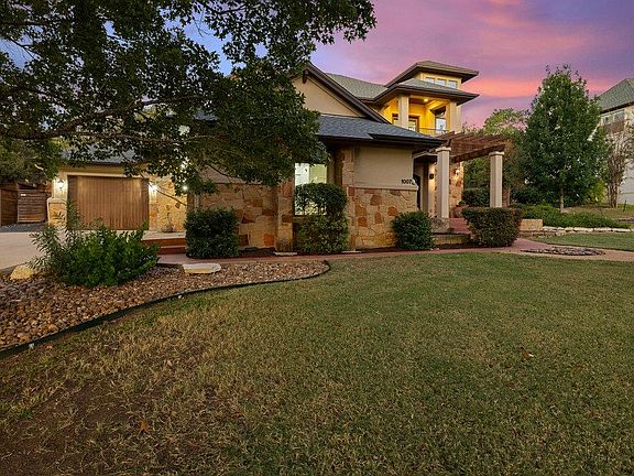 Hill Country charm meets relaxed luxury in this inviting 3,602 sq ft home—perfect for family gatherings and everyday Austin living. Tucked away on a quiet street with optional Lake Hills Community Association membership, residents can enjoy Lake Austin park access with a roped beach, playscape, boat ramp, and docks. Zoned to top-rated Eanes ISD schools, including Barton Creek Elementary and Westlake High, this home combines privacy, convenience, and community. An open layout centers around a stone fireplace flanked by built-ins, flowing into a remodeled kitchen designed for entertaining. Features include a 4-burner gas range with double oven, pull-out microwave, custom cabinetry, two appliance garages, and a Kinetico 5-stage osmosis water system serving the drinking spout and Sonic-style icemaker. A cozy built-in banquette overlooks the backyard retreat, where large sliders open to seamless indoor-outdoor living. The outdoor area is an entertainer’s dream with a covered kitchen and dining space, heated pool with cascading water feature and swim up bar, hot tub, and LED-lit sport court for basketball, pickleball, or volleyball. The 3-car garage includes an oversized bay for a 25-ft boat, making lake days effortless. Inside, a flexible downstairs office or 5th bedroom with full bath suits guests or work-from-home needs. The primary suite offers patio access, walk-in shower, and custom closet. Upstairs, a reinforced game room, media room with wet bar, and three additional bedrooms (including one with private balcony) provide space for everyone. Low-maintenance and full of Hill Country appeal, this home delivers the ideal balance of family comfort, modern luxury, and lake access—all just minutes from downtown Austin.