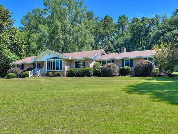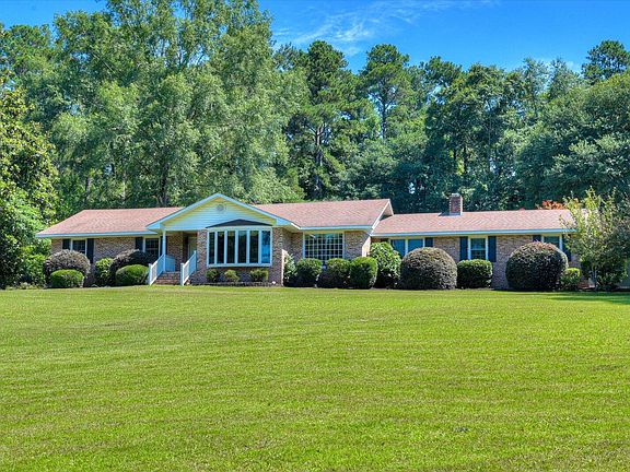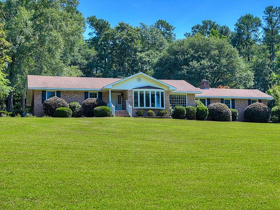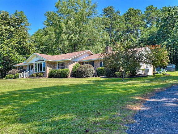 Come see this beautiful one-owner home in North Augusta on 3.4 acres close to the Greeneway Trail with no city taxes! Rear yard contains a large 32x16 gunite pool and three outbuildings - a greenhouse and two storage buildings suitable for workshop. The yard is beautifully landscaped and private. Enter the front door to a formal dining room and living room with original hardwood floors and featuring built-in shelves and a large bay window. Step down to a cozy den with large ceiling beams and brick gas fireplace. The heart of this house is the kitchen, with its tremendous center island, two sinks, ample cabinet space and a dry bar. Sunny breakfast room overlooks back patio and rear yard with views of the pool beyond. Primary bedroom has walk in closet and private access to back yard. Three other bedrooms have hardwood floors and large closets and all share a hall bath featuring double vanities and a deep jetted tub with shower. It's rare to have over three acres so close to town with quick access to North Augusta, Augusta and the interstate!