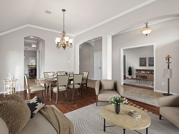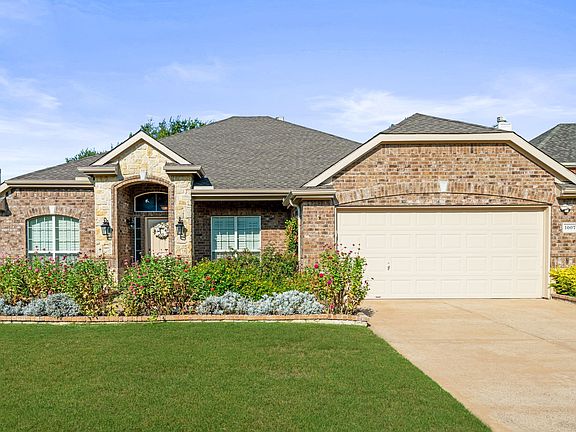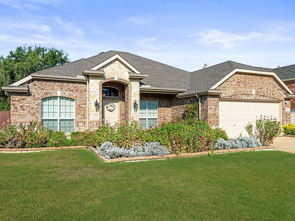 ONE OF A KIND! Come and chill in the PRIVATE BACKYARD that backs up to gorgeous TREES. You won't want to leave! Fantastic ONE-STORY home with beautiful updates throughout including gorgeous WOOD FLOORING, carpet, plantation shutters through the home, interior & exterior paint, newer tile flooring, & crown molding. The elegant entryway opens to the formal living & dining rooms. Spacious family room with a beautiful stone fireplace. Kitchen features corian counters, beautiful wood cabinetry, & a breakfast area with window seats. Owners retreat has a decorative tray ceiling & ensuite bath with JETTED TUB, dual sinks, separate shower, & walk-in closet. 3 secondary bedrooms - 1 can be a fantastic STUDY. Instant hot water recirculator. Enjoy the greenbelt views from the kitchen, breakfast, living, & owners retreat. Relax on the extended stained stamped concrete patio while enjoying nature. Iron fence across the back for unobstructed views. Garage has a work area with sink. New AC, compressor, & furnace in 2024, NEW ROOF in 2025. Community pool & sports courts close by. Wylie ISD!