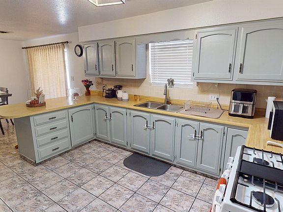 This charming 1982 home offers approximately 1,450 sq. ft. of living space on a 70x100 lot, featuring 2 bedrooms and two ¾ bathrooms. Though originally built in 1982, the home has been beautifully remodeled, blending comfort with modern updates. The kitchen offers plenty of cabinetry and countertop space and opens to the dining area, which flows seamlessly into the spacious living room — perfect for gatherings and everyday living. The primary bedroom features a walk-in closet and a ¾ ensuite bathroom, while the second bedroom includes carpeting for added comfort. Enjoy year-round comfort with refrigerated air and central heat pump system installed in 2022. Additional features include a metal pitched roof, an attached one-car garage, and an attached carport. The fenced backyard offers a patio for outdoor entertainment and storage sheds for added convenience. This home is connected to city water, sewer, gas, and trash, with PNM Electric as the power provider. Located in a great area with easy access to schools, businesses, and the hospital. Note: The current refrigerator and stove will not convey; however, sellers will replace them with other units prior to closing. Cameras will not convey either.