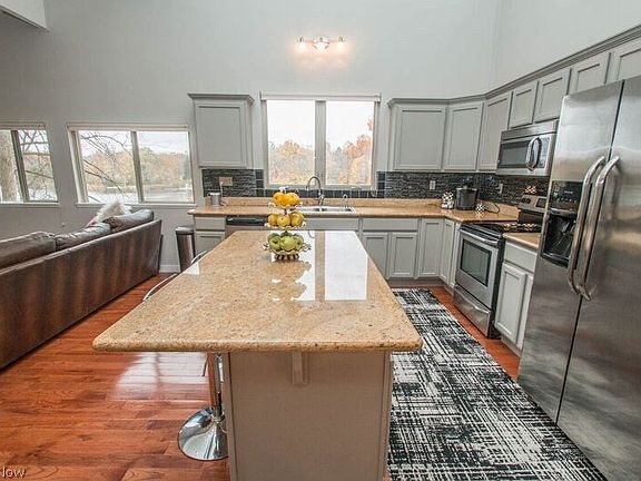 If you are looking for a non traditional home, than this is it! Come see this unique lake front contemporary style home on Stewart Lake. Over 2600 square feet of total living space. The home sits on a dead end private street in this lake community. You will fall in love with the views of the lake from the open concept kitchen, great room, dining area all with hardwood floors. The kitchen offers granite counters and stainless appliances. The master bedroom is on the first floor and has a private bath. There is also a laundry room and office/study area on the first floor. An additional half bath completes the first floor. A spiral staircase will take you up to a loft area that is perfect for an exercise area. Up another set of stairs is a private bedroom. The walkout lower level has just been freshly painted and the family room "pit" area just remodeled. Two more bedrooms both with private baths complete the lower level. Tons of storage everywhere. 2 car attached garage. Ho