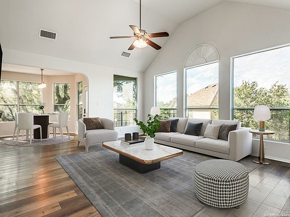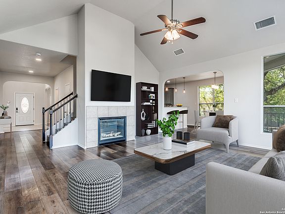 Centrally located updated home nestled in the sought-after The Oaks of Vista del Norte. This thoughtfully designed residence blends modern upgrades with versatile living spaces, offering comfort, style, and functionality. Upon entry, you're greeted by a tiled foyer that opens to a flexible office space and a formal dining room enhanced by elegant plantation shutters. The home features durable wood-based laminate flooring throughout-12mm tongue-and-groove with AquaGuard waterproof technology and a lifetime warranty-providing both aesthetic appeal and everyday practicality. Fresh interior paint (2025) adds a crisp, contemporary feel. The kitchen showcases granite countertops, a glass tile backsplash, a center island, and stylish 8-inch cabinet handles. A pull-down faucet complements the double oven range and smooth cooktop, while three pendant lights over the breakfast bar create a warm ambiance. A walk-in pantry, adjacent laundry room with extra storage, and a Whirlpool refrigerator complete the space. The primary suite offers a spacious retreat with high ceilings, a ceiling fan, and no carpet. The renovated en-suite bath features a sleek black double vanity, a frameless glass walk-in shower with bench, rain showerhead, and body jets. Additional amenities include a toilet closet, linen storage, and a generous walk-in closet. All bedrooms include walk-in closets, and the media/flex room offers its own walk-in closet for added storage. A guest half bath on the first floor adds convenience. Step outside to a private backyard oasis featuring a three-level composite deck with storage underneath, an above-ground pool, a basketball court, and mature trees that provide shade and tranquility. Additional highlights include a gas fireplace in the family room, a water softener system, new smoke detectors, recessed can lighting, and a Ring doorbell with multiple Ring security cameras. The Oaks of Vista del Norte is known for its peaceful setting, mature landscaping, and proximity to schools, parks, and playgrounds. Residents enjoy easy access to shopping, dining, and major highways, making commuting and daily errands convenient. The neighborhood fosters a welcoming atmosphere for all.