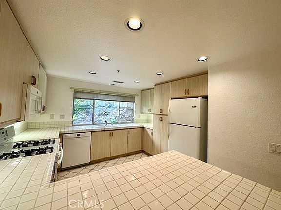 Newly painted 3 bedroom and 2 1/2 bath, 1692 sq ft home. The 3rd bedroom has no closet and can be used as an office. Two story with a large backyard. Large open kitchen with a bar counter. Light cabinets with white countertops. A nook for dining. Living room has a fireplace and a view of the backyard. Refrigerator is included. Gas cooktop and microwave oven. All three bedrooms have vaulted ceilings and brand new ceiling fans. The ensuite primary bedroom has two closets and dual sinks. There is also a balcony with direct access from the bedroom with a view of the backyard. Two car garage with direct access. Washer and dryer are included. The homeowners association has a pool and spa. A sports park and hiking are nearby attractions. The ocean is a couple of miles away. A must see!