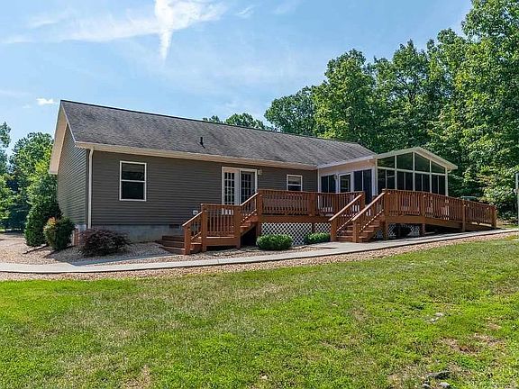 Privacy galore! Beautiful ONE LEVEL home on nearly 7 acres! Wooded setting, watch the deer in your yard! Lots of room for your animals to roam. Maintenance free home with HUGE 3 car det. garage & rocking chair front porch! Manicured level lawn & circle driveway! Inside, OPEN floor plan with popular split bedroom design, master suite that is wonderful! Huge walk in closet, double sinks in master. Serene setting in the sunroom on the back, heated and cooled and WOW imagine this scene with snow in the Winter! Popular Riverheads district! Only minutes from Stuarts Draft. Better hurry, homes like this don't come along everyday!