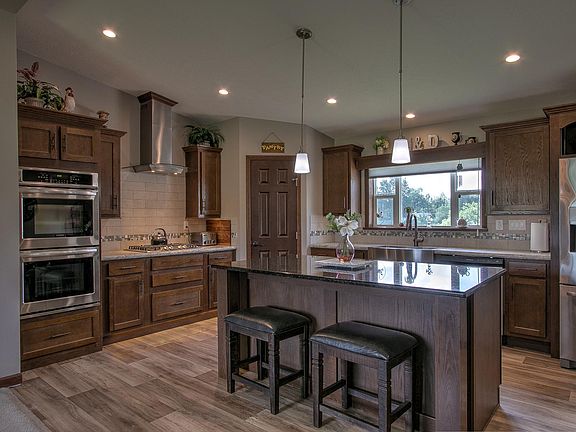 Like-new double wide located at the end of a dead end road. Excellent 28x26 2 car garage w/ loft. Enjoy convenient living where the lot rent also covers lawn care, snow removal & trash. Nice concrete driveway & several decks enhance the exterior. Watch wildlife from this private setting w/ great views of the open backyard & pond. Entry provides storage & laundry room. 2 bedrooms & full bath on one side of home & an amazing Primary En-Suite complete w/ huge walk-in closet & elegant Private bathroom w/ walk-in shower & lots of storage. This home provides 36" doors, 42" hallways & tall toilets. Beautiful living room gas fireplace w/ stone surround provides ambiance & additional heat during cold winter months. Stunning kitchen w/ walk-in pantry, center island w/ very convenient dust broom collector, soft-close cabinet doors & stainless steel appliances. Dining sliding door leads to rear 3 season porch w/ adjoining deck. Bring your golf cart & stroll down to the waters edge or restaurant just a short drive away. Easy commute to I35 to travel north or south. Call today to schedule a private tour!
