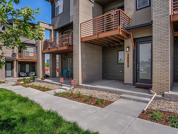 Gorgeous contemporary townhouse in Lone Tree with stunning mountain & city views. Spacious open concept layout with 10' ceilings & brilliant natural light. Open kitchen with granite slab counter tops & stainless steel appliances. Master suite has vaulted ceilings, breath taking mountain views, en suite bathroom and his & hers closets. Great walkability to shopping, restaurants, entertainment. Conveniently located to I-25, 470 and just half a mile from the future Sky Ridge light rail station.